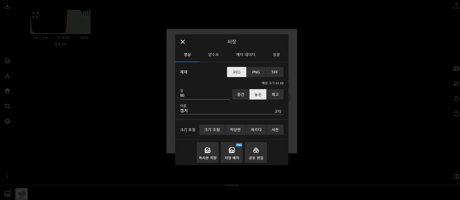 필터나 크기조절, 잘라내기 텍스트 삽입 등 간단한 작업엔 굉장히 좋을 듯 하다. 한글지원!
